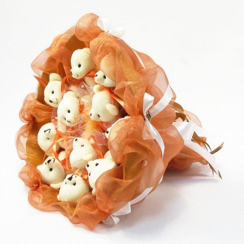 Букет з м'яких іграшок 11 ведмедиків 5283IT теракотовий