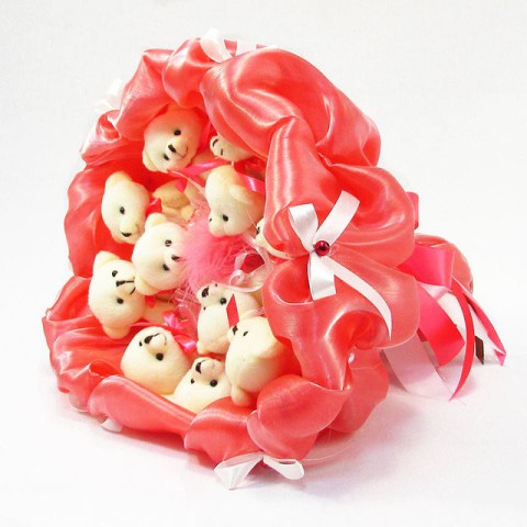 Букет з м'яких іграшок 11 ведмедиків 5284IT кораловий