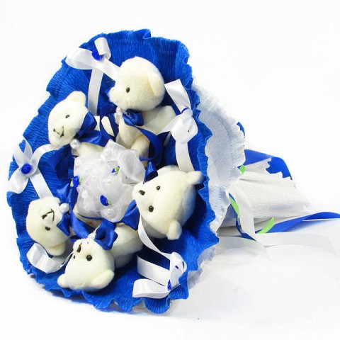 Букет з м'яких іграшок 5 ведмедиків 5290IT синій