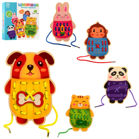 Дерев'яна іграшка Шнурівка MD-2849. Шнурівка прискорює розвиток очо-ручної координації та дрібної моторики у рази. Вона вчить малюка уважності, терпінню, сприяє розвитку посидючості. Шнурівка – яскравий приклад того, що проста іграшка, що навчає, може стати для дитини потужним інструментом розвитку. Вона не лише познайомить його з новими квітами та формами, а й значно зміцнить пальчики та кисті рук, підготує їх до письма. У наборі п'ять різних шнурівок у вигляді тварин. Розмір упаковки: 20х20х5 смДерев'яна іграшка Шнурівка MD-2849. Шнурівка прискорює розвиток очо-ручної координації та дрібної моторики у рази. Вона вчить малюка уважності, терпінню, сприяє розвитку посидючості. Шнурівка – яскравий приклад того, що проста іграшка, що навчає, може стати для дитини потужним інструментом розвитку. Вона не лише познайомить його з новими квітами та формами, а й значно зміцнить пальчики та кисті рук, підготує їх до письма. У наборі п'ять різних шнурівок у вигляді тварин.Розмір упаковки: 20х20х5 см