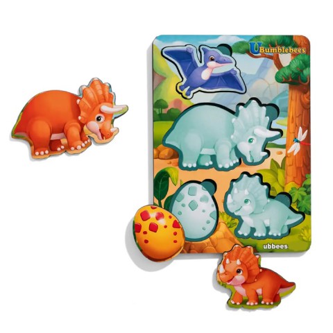 Дерев'яний пазл Динозаври з підказкою 16×12×0,6 см від Ubee – розвиваюча головоломка для малюків! Натуральне дерево, підказки для легкості, деталі динозаврів. Підходить для дітей від 3 років.