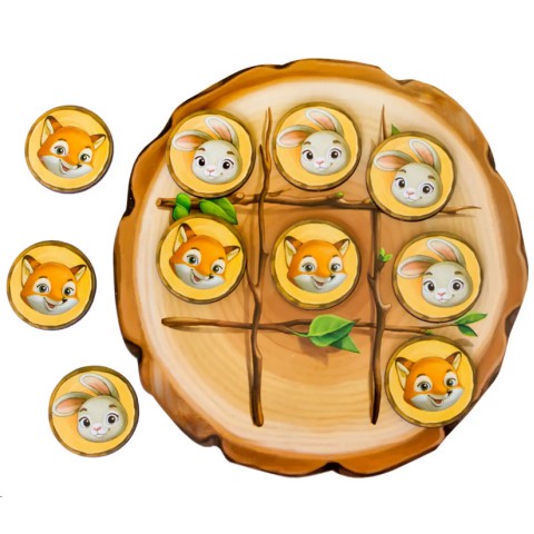 Класична гра хрестики-нуліки в милому дизайні з зайчиком та лисичкою – це компактна розвага для дітей від 4 років та всієї родини. Дерев’яна дошка розміром 15×15×0,6 см з фігурками у формі тварин робить гру не тільки логічною, але й естетичною, розвиваючи стратегію та увагу. Фігурки яскраві, безпечні, з гладкими краями, легко розміщуються на дошці. Матеріали натуральні, екологічні, довговічні. Ця гра допомагає вчити правила, планувати ходи, розвивати логічне мислення та соціальні навички в парі гравців. Компактний розмір дозволяє брати в подорож чи грати вдома, роблячи перерви веселим часом. Ідеальний подарунок для розвитку, який поєднує класику з дитячою тематикою, роблячи процес цікавішим для малюків.