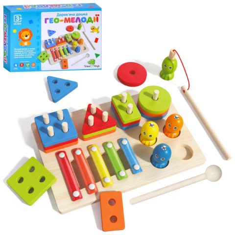 Дерев'яна іграшка Багатофункціональна дошка "Гео-Мелодії" MD 0855 геометрика, ксилофон