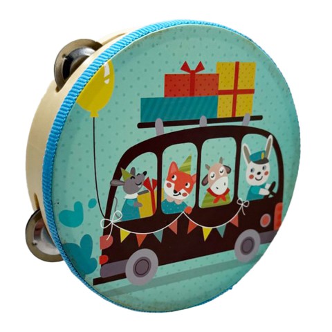 Дерев'яна іграшка Бубен "Тварини в транспорті" MD 0367-46 діаметр 15 см