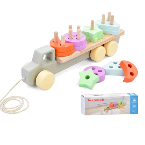 Дерев’яна іграшка Геометрика трейлер, 29.5 см, каталка на шнурі, MD0837 (В асортименті)