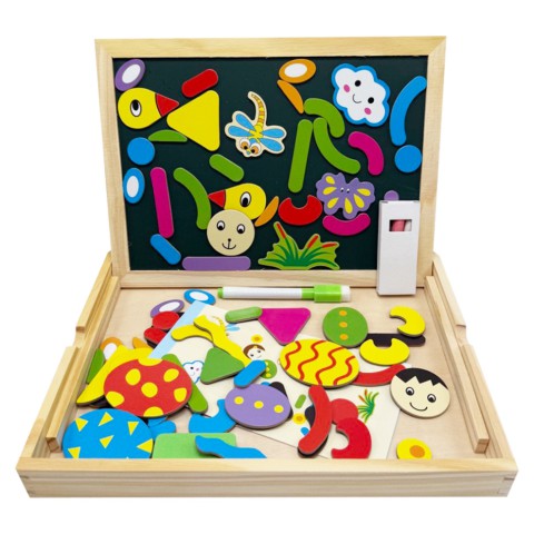 Ця двостороння магнітна дошка — справжній скарб для розвитку творчих здібностей дитини! Вона об'єднує в собі одразу дві корисні ігрові поверхні, що робить її універсальним інструментом для навчання та ігор.