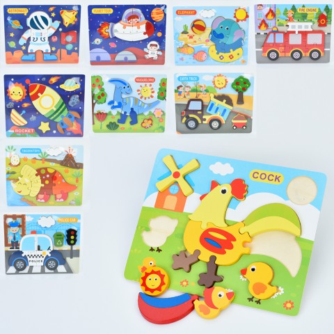 Дерев’яна іграшка Пазли (динозаври, тварини, транспорт, космос), 22.5x18x1 см (В асортименті)