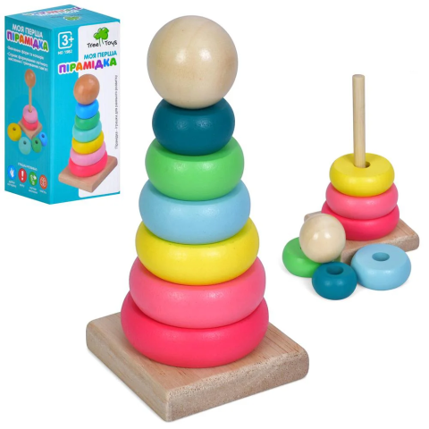 Дерев’яна іграшка Пірамідка, 13.5 см, кільця 6 шт., Limo Toy MD1982