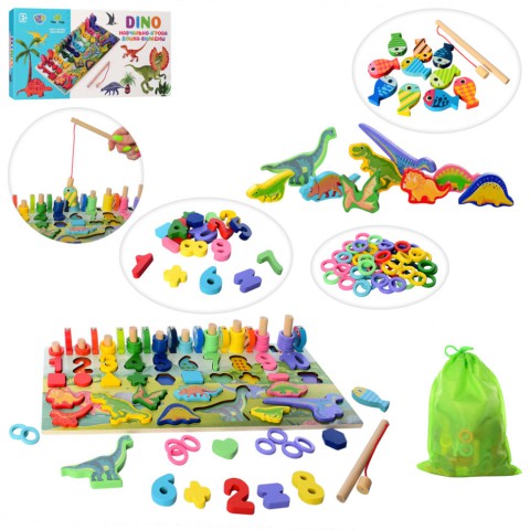 Деревяна іграшка Центр розвиваючий MD 2758 фігурки, риболовля, цифри, динозаври