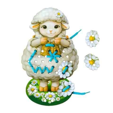 Шнурівка – відмінний дорожній варіант розвиваючої гри, який подобається дітям. Можна не тільки шнурувати, але і вивчати барвистий малюнок. У наборі: овечка, три квітки, шнурок.
