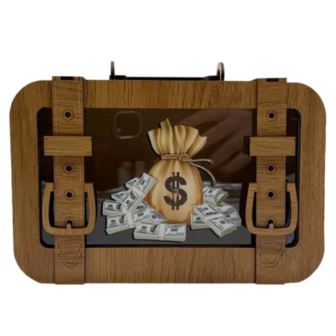 Цей стильний і функціональний аксесуар у формі вінтажної валізи, оформлений у яскравому дизайні, що імітує американську валюту, стане потужним мотиватором для фінансової мети.
