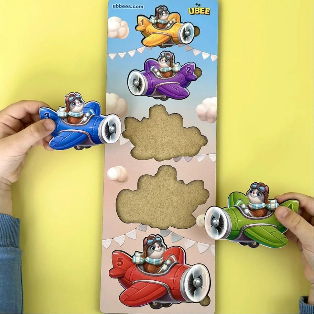 Ця дитяча розвиваюча гра вкладка «Літаки більше-менше» - це знахідка для маленьких шанувальників транспорту.