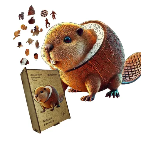 Дерев'яний фігурний пазл Бобріто Кокосіто, А4, Картонна коробка 100 елементів