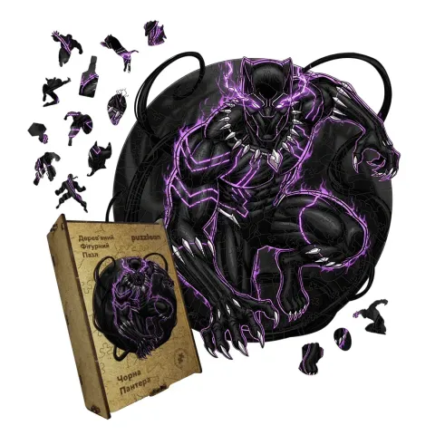 Дерев'яний фігурний пазл Чорна Пантера, А3, Картонна коробка 200 елементів