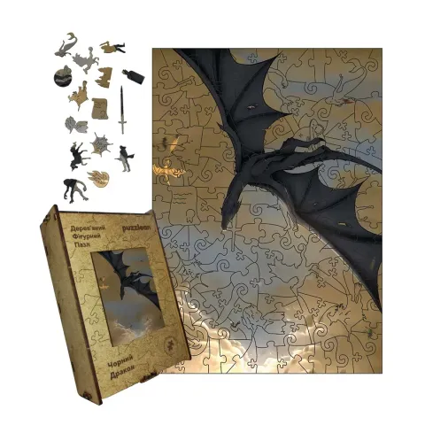 Дерев'яний фігурний пазл "Чорний Дракон"
