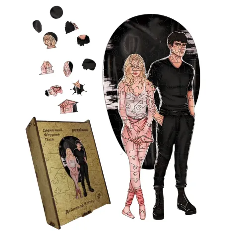 Дерев'яний фігурний пазл Деймон та Вінтер, А5, Дерев'яна коробка 35 елементів