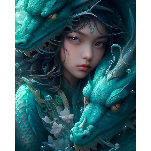 Зробіть свій день яскравішим з дерев’яним фігурним пазлом Дівчинка і дракон, А2, Картонна коробка 300+ елементів