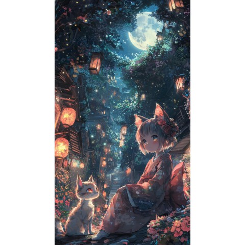 Зробіть свій день яскравішим з дерев’яним фігурним пазлом Дівчинка-кішка та котеня (ver 2), А4, Картонна коробка 100 елементів