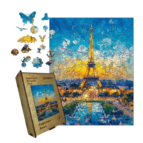Дерев'яний фігурний пазл Ейфелева Вежа, А4, Картонна коробка 100 елементів
