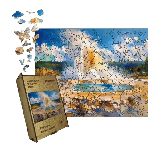 Дерев'яний фігурний пазл Гейзери Єллоустоуна, А5, Дерев'яна коробка 35 елементів