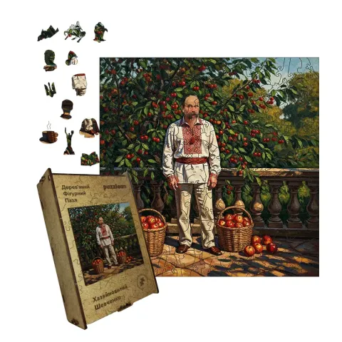 Дерев'яний фігурний пазл Хазяйновитий Шевченок, А3, Картонна коробка 200 елементів