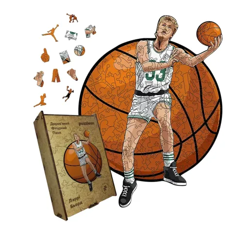Дерев'яний фігурний пазл Ларрі Берд, А2, Картонна коробка 300+ елементів