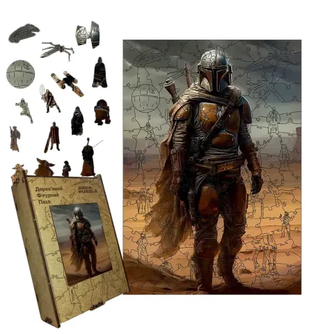 Дерев'яний фігурний пазл Легенда Мандо, А4, Дерев'яна коробка 100 елементів