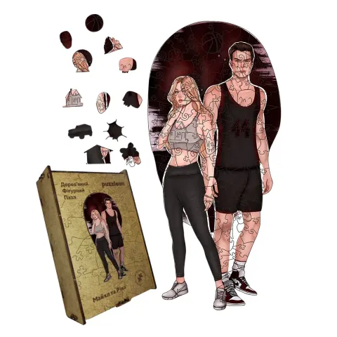 Дерев'яний фігурний пазл Майкл та Ріка, А2, Картонна коробка 300+ елементів