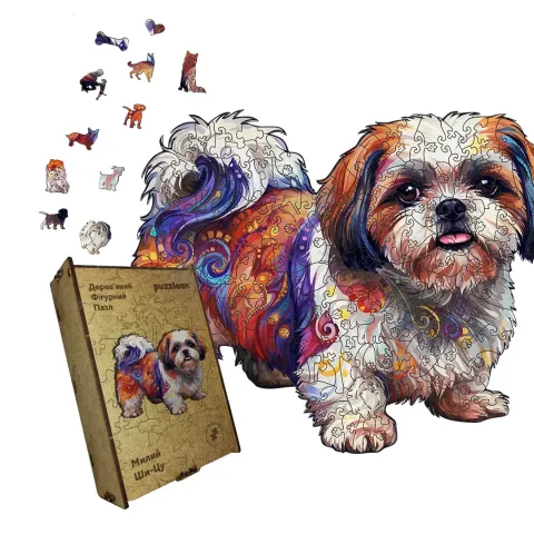 Дерев'яний фігурний пазл Милий Ши-тцу, А4, Картонна коробка 100 елементів