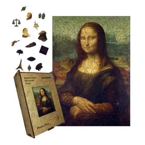 Дерев'яний фігурний пазл Мона Ліза, А4, Картонна коробка 100 елементів