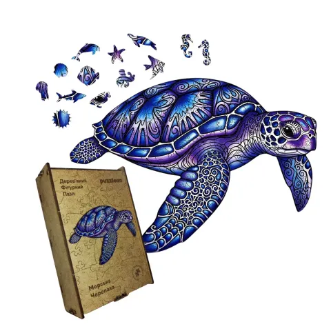 Дерев'яний фігурний пазл Морська Черепаха, А3, Дерев'яна коробка 200 елементів