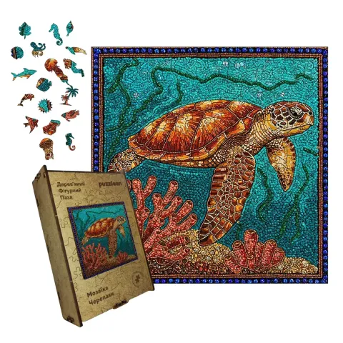 Дерев'яний фігурний пазл Мозаїка Черепахи, А1, Картонна коробка 500+ елементів