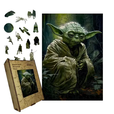 Дерев'яний фігурний пазл Мудрець Йода, А3, Картонна коробка 200 елементів