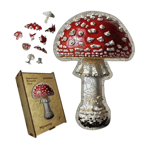 Дерев'яний фігурний пазл Мухомор, А2, Дерев'яна коробка 300+ елементів