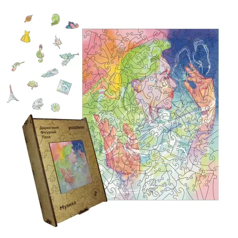 Дерев'яний фігурний пазл Музика, А4, Дерев'яна коробка 100 елементів