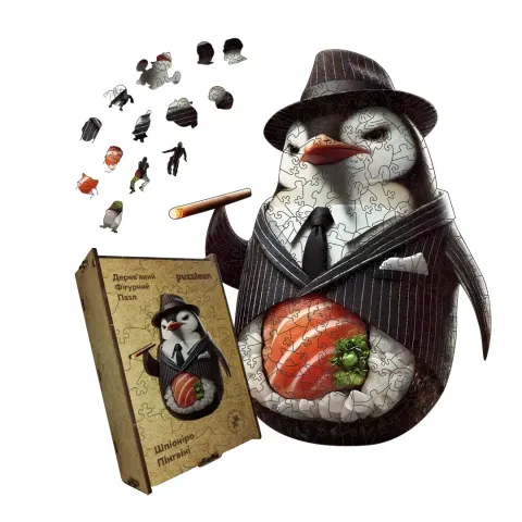 Дерев'яний фігурний пазл Шпіоніро Пінгвіні, А2, Картонна коробка 300+ елементів