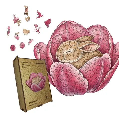 Дерев'яний фігурний пазл В обіймах Тюльпана, А1, Картонна коробка 500+ елементів