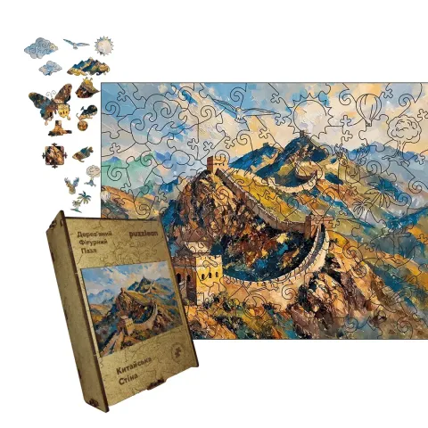 Дерев'яний фігурний пазл Великий китайський мур, А4, Дерев'яна коробка 100 елементів