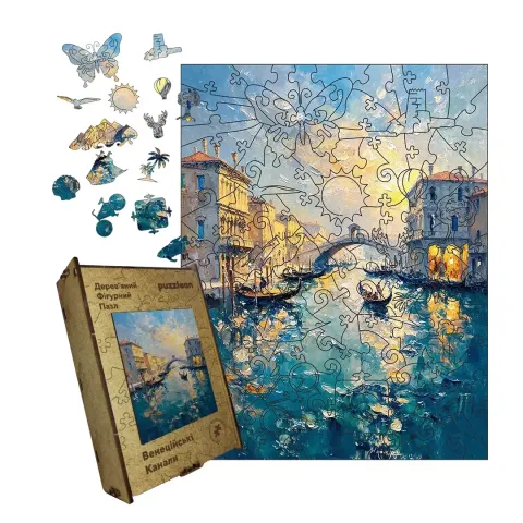 Дерев'яний фігурний пазл Венеційські канали, А5, Картонна коробка 35 елементів