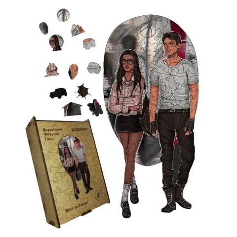 Дерев'яний фігурний пазл Вілл та Еморі, А4, Картонна коробка 100 елементів