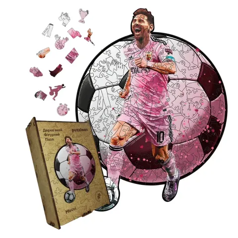 Дерев'яний фігурний пазл Запальний Мессі, А5, Дерев'яна коробка 35 елементів
