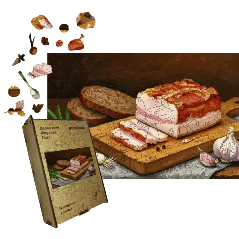 Дерев'яний фігурний пазл Запашне Сало, А5, Картонна коробка 35 елементів
