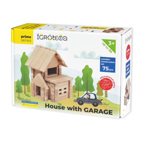 Конструктор «Будиночок з гаражем» призначений для діток від 5-ти років, зібравши виріб по інструкції, дитина отримує компактний двоповерховий дерев'яний будинок з балконом та гаражем для улюбленої машинки. Зібрати його буде легко та цікаво; кожен з етапів зображений у детальній інструкції. Конструктор чудово доповнює ігри з машинками. З'єднання 75 деталей набору - серед яких бруси, півбруси та елементи для побудови дахової конструкції - дасть дитині розуміння основ будівництва помешкань зі зрубу - аутентичному українському методу зведення хат у Карпатах. Бруси та півбруси мають пази для скріплення між собою. Січення брусів - квадратне. Найкоротша деталь - 24 мм. Найдовша - 120 мм. Іграшка виготовлена з твердих порід деревини, не лакована, не фарбована. Іграшка є абсолютно натуральною, екологічною, адже виготовлена з цільної деревини, не містить жодних лако-фарбових покриттів, емульсій, клеїв чи шкідливих домішок.Гра з конструктором розвиває у дитини просторове мислення, логіку, увагу, дрібну моторику та творчі навички. Вміння діяти на базі інструкції, тобто за схемою, поданою у кожному виробі стане гарною базою для швидкого та ефективного навчання у школі. З'єднання деталей не за інструкцією, а за власним бажанням та фантазією, сприятиме розвитку уяви, нестандартного мислення, творчості.Всі вироби ТМ "Ігротеко" поєднуються між собою, тому можна їх колекціонувати. Маючи більше конструкторів ТМ «Ігротеко», дитина зможе побудувати ціле місто з різними видами споруд!Увага! Як і справжні будинки, наші конструктори радимо починати складати з фундаменту! На рівній твердій поверхні викладіть найнижчий рівень, а потім рівень за рівнем, брус за брусом зводьте стіни, перекладайте деталі паз-в-паз, кріпіть їх, робіть перемички, з’єднуйте прибудови і накривайте дахом! Все як у справжньому житті!