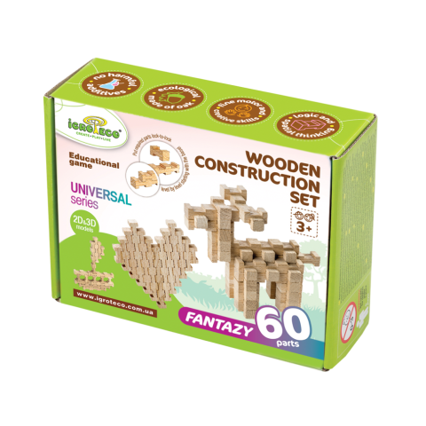 Дерев'яний конструктор "Фантазія" Igroteco 900057, 60 деталей