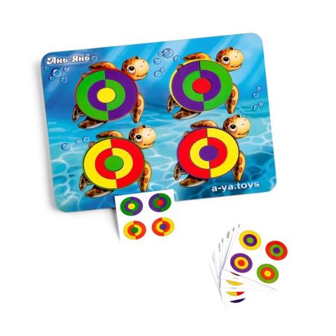 Сортер відмінно підходить для вивчення кольорів і понять: "більше-менше", "частина і ціле". Деталі овалів взаємозамінні і легко дістаються пальчиками. Також в наборі йдуть 10 карток.