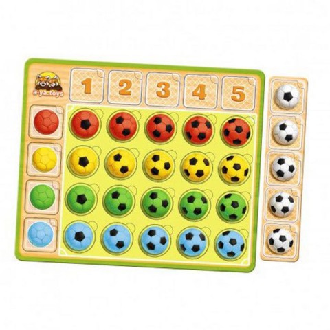 У наборі 34 плашки для сортування. Як грати: дитині необхідно розташувати плашку з м'ячиком у потрібній графі, у вказаному кольорі та з потрібною кількістю чорних крапок на м'ячі або ж підібрати відповідну цифру від 1 до 5 (додаткові плашки йдуть у наборі). Усі деталі гри взаємозамінні - це означає, що щоразу можна змінювати умови гри. Гра розвиває увагу, логіку, мислення та пам'ять. Вчимо рахунок і кольори, весело граючи.