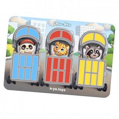 Двошаровий пазл-сортер. У наборі: 27 деталей та 12 карток. Милі звірята сидять у своїх колясках, укриті ковдрами. Завдання дитини: розкласти звірів, ковдри та козирки колясок за зразком.