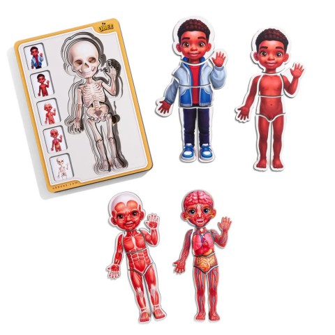 Тепер вивчати будову людського тіла можна не лише цікаво, а й весело! Дерев’яний сортер-пазл з 5 шарів – це відмінний спосіб познайомити дитину з основами анатомії. Цей багатошаровий пазл допоможе детально вивчити різні системи організму: від скелета до шкірного покриву, м'язів, кровоносної системи, а також зовнішнього вигляду людини в одязі.