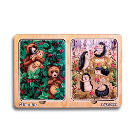 Дерев'яний пазл-вкладиш "Їжачки та ведмеді" Ubumblebees (ПСД186) PSD186 в рамці
