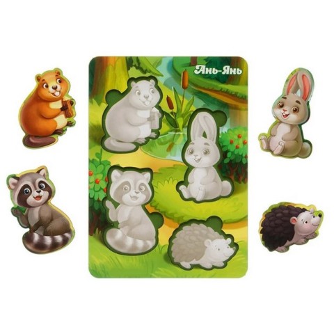 Дерев'яний пазл-вкладиш "Лісові тварини-1" Ubumblebees (ПСФ057) PSF057 фон із підказкою